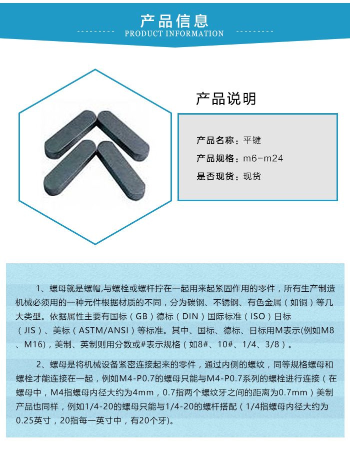 3.鉤頭楔鍵主要用為緊鍵聯接。在裝配后,因斜度影響,75.GB1096平鍵使軸與軸上的零件產生偏斜和偏心,所以不適合要求精度高的聯接。